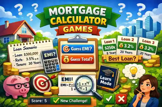 Buying a home involves more than just knowing the loan amount. You must understand monthly EMI, total repayment, and how interest compounds over time. This interactive mortgage game turns serious financial math into practical decision-making practice.